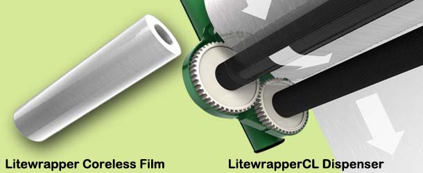 The LiteWrapper stretch film dispenser is a pre stretch film dispenser that fits a special made core-less stretch film roll. The LiteWrapper dispenser allows easy dispensing and affordable stretch film costs. Below are some advantages!