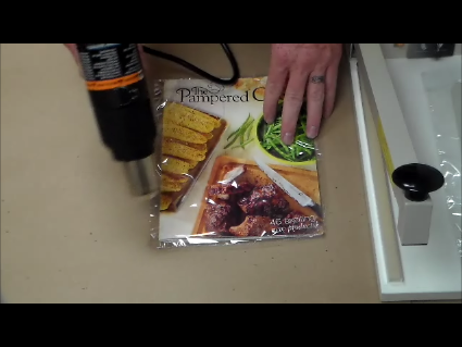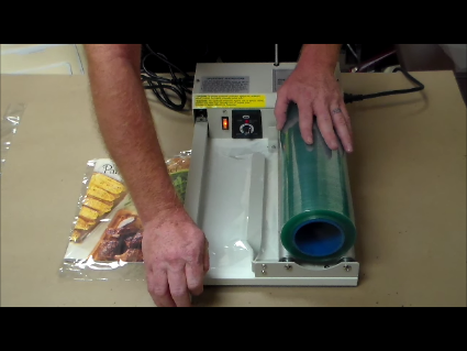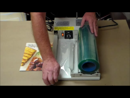 We are using an I-Bar sealer with a 500 ft. roll of centerfold shrink wrap. We will be wrapping a Pampered Chef catalog. Our I-Bar seal temperature is set to the middle heat setting.