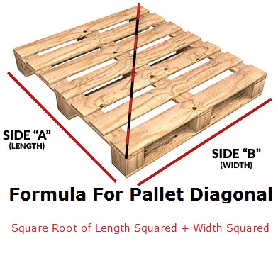 The size of the machine base needed is determined by the pallet diagonal. Which can be determined by using the formula below.