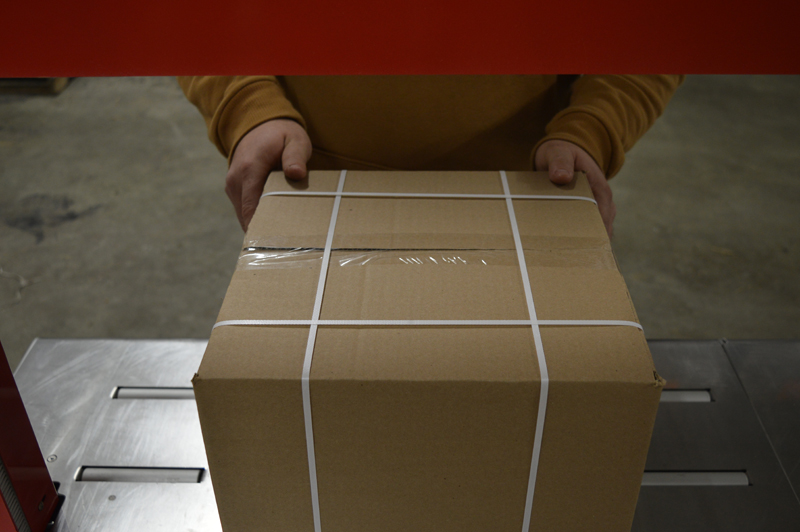 Step 5. If the item(s) needs an additional strap on the same side, position the box properly and apply an additional strap.