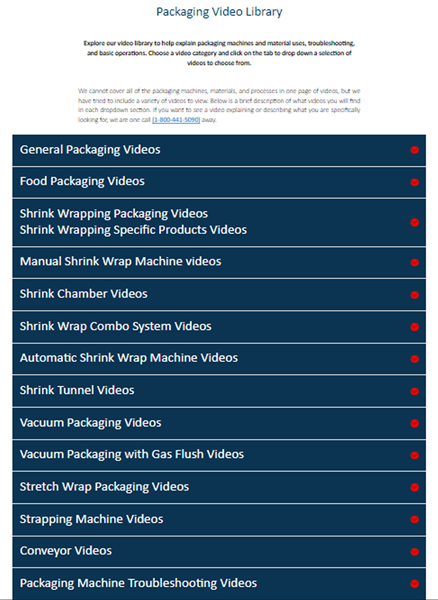 It is broken down into different sections for easy viewing. Many machine videos can be seen in the library. From there, you can see the process of packaging various products while seeing what the finished product looks like.